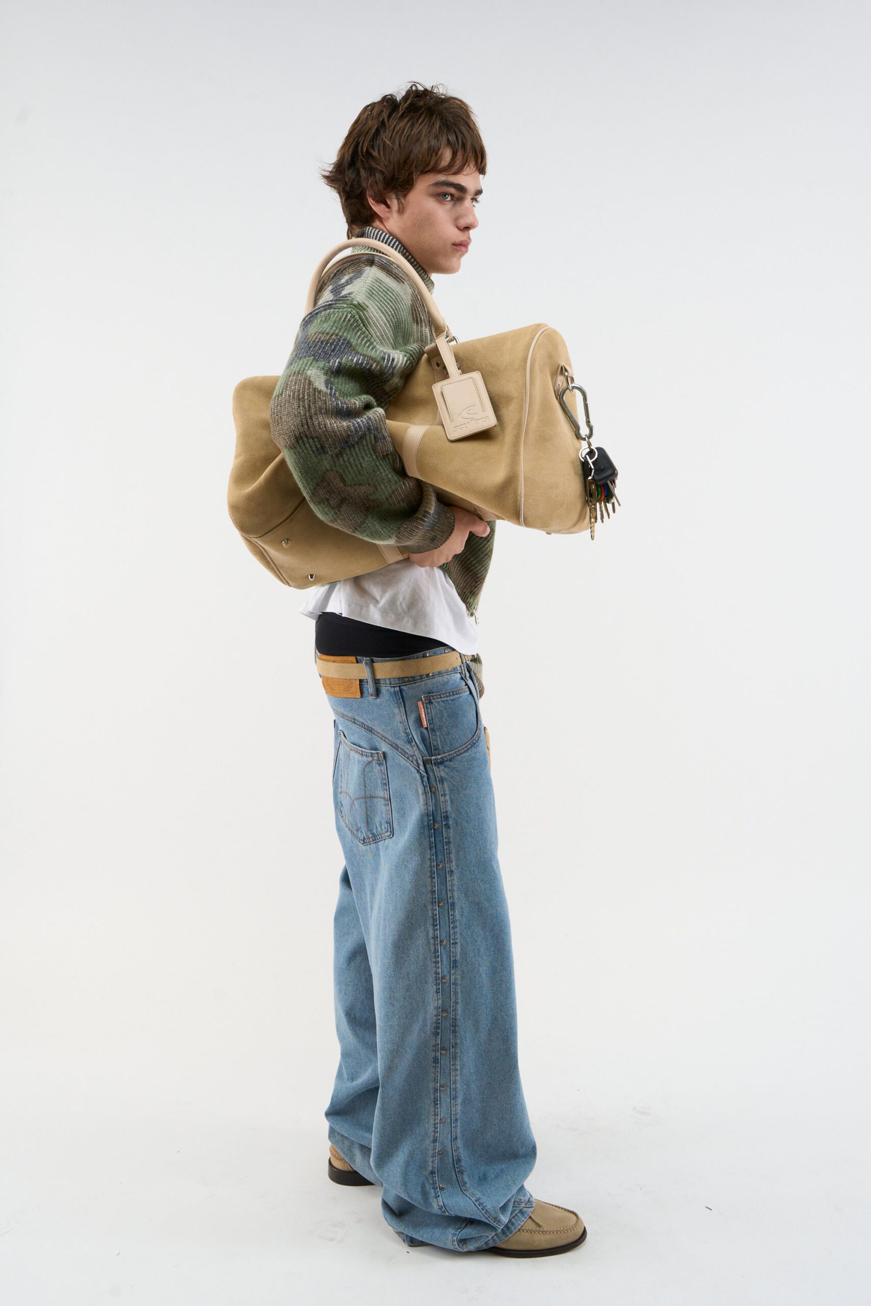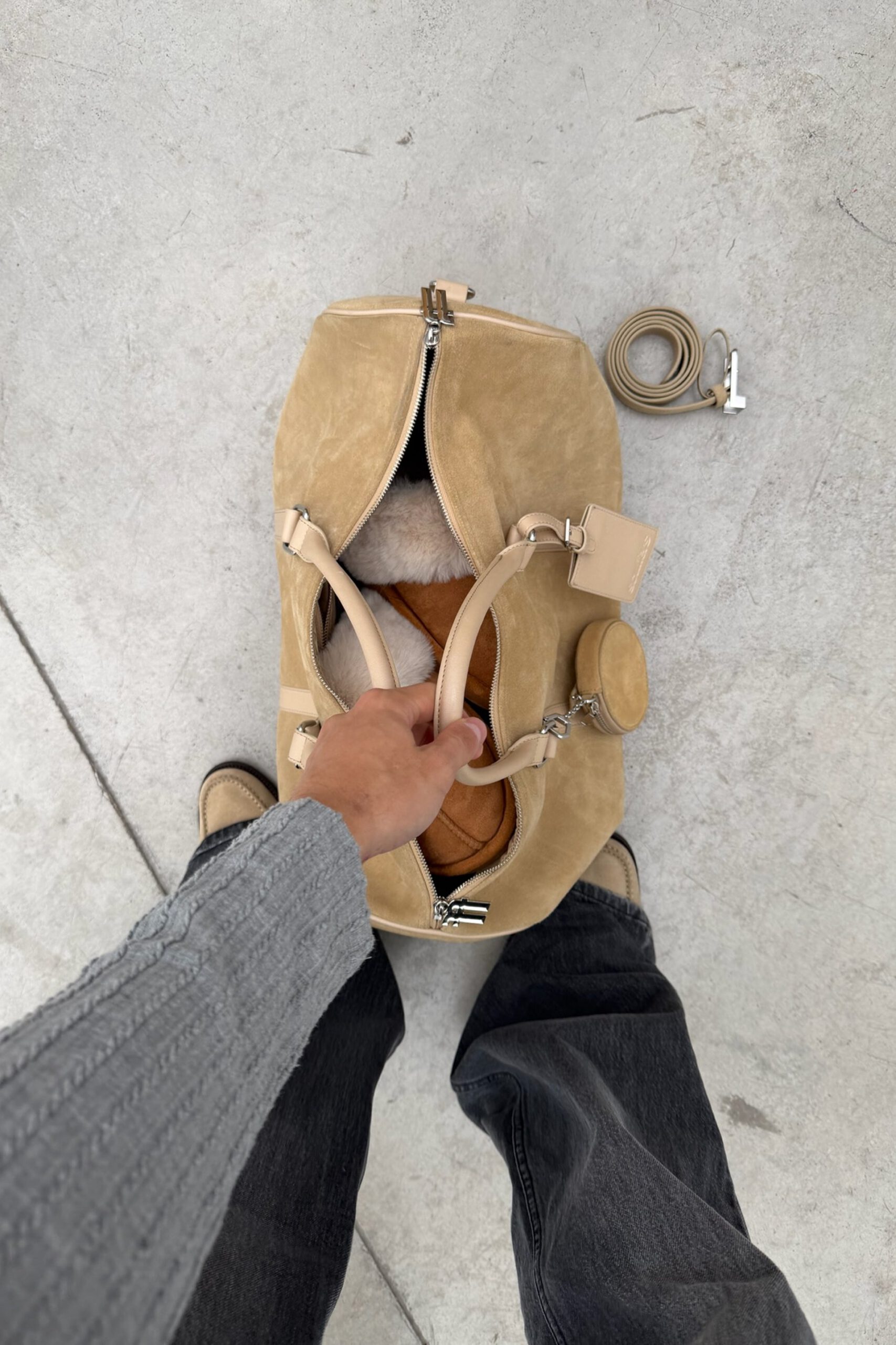 Suede Ecru Duffle Bag
